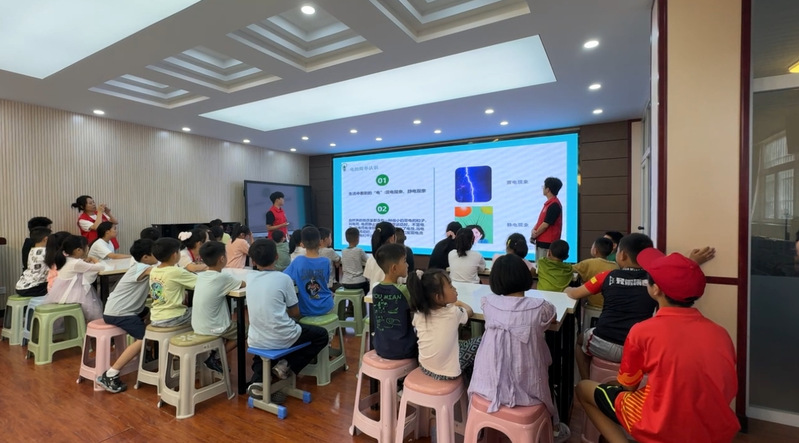 活动伊始,通过生动有趣的讲解,向同学们介绍了新能源的种类、特点以及在生活中的应用。从太阳能到风能,从水能到地热能,实践团的成员们用通俗易懂的语言将复杂的科学知识转化为一个个鲜活的案例,深深吸引了在场的每一位小朋友。大家听得聚精会神,不时举手提问,现场互动氛围十分热烈。